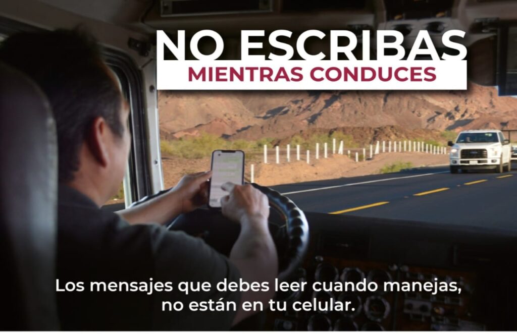 La Secretaría de Infraestructura, Comunicaciones y Transportes (SICT) le recomienda al conducir por carretera evitar el uso del teléfono celular; utilizar el cinturón de seguridad y respetar los límites de velocidad y señalamientos.