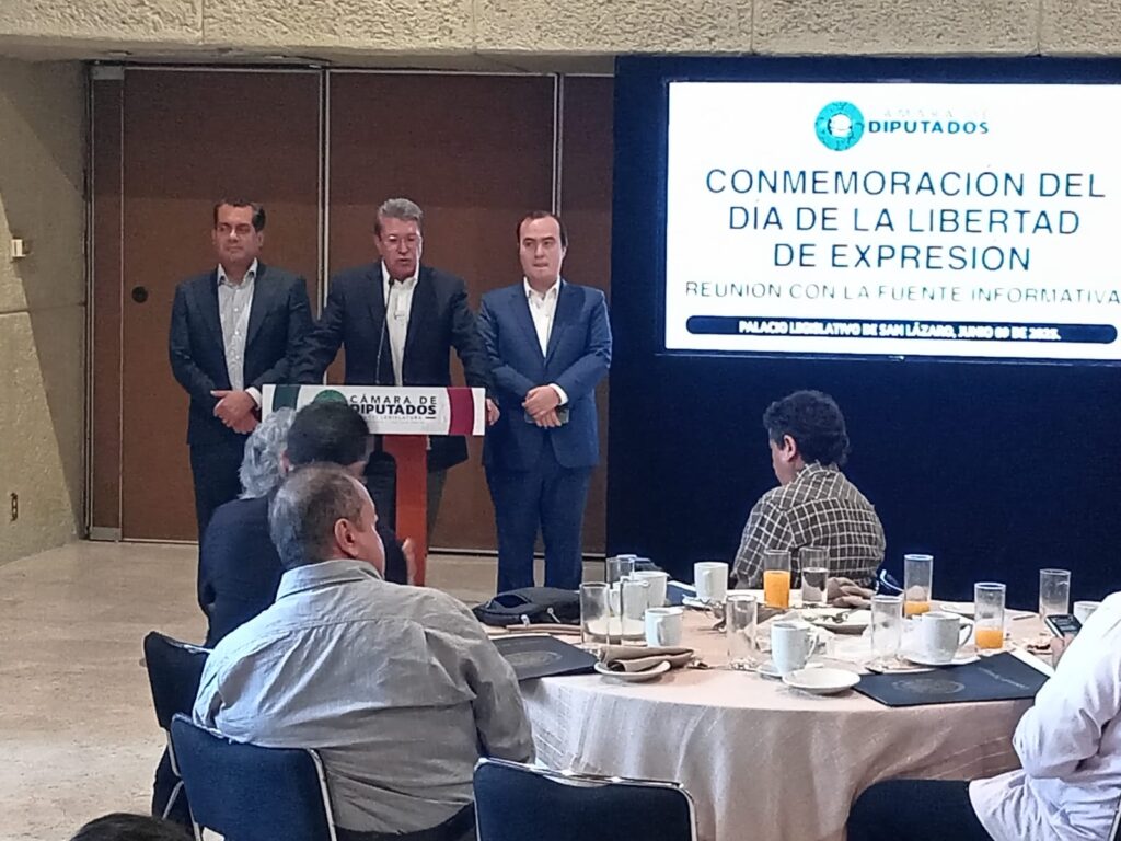 Monreal Ávila comentó que el 7 de junio es el Día de la Libertad de Expresión y hoy “quiero reconocer su trabajo constante, valiente y comprometido. Junto con el presidente de la Mesa Directiva, el diputado Sergio Gutiérrez Luna, y yo decidimos invitarles y conmemorar esta fecha”.