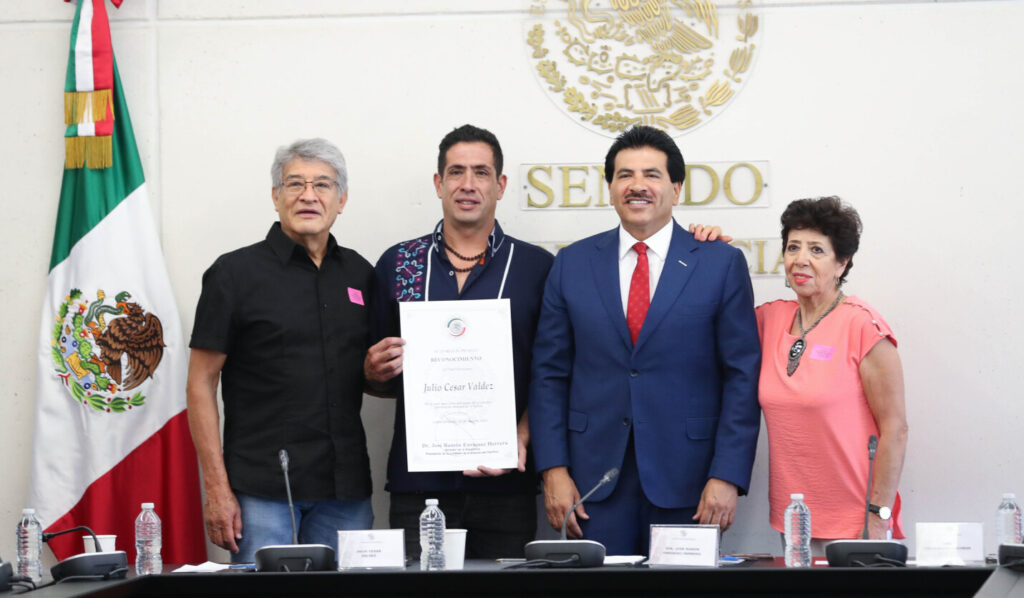 El senador José Ramón Enríquez Herrera entregó un reconocimiento al chef Julio César Valdez, por su gran labor como embajador de la cultura y gastronomía mexicana alrededor del mundo.