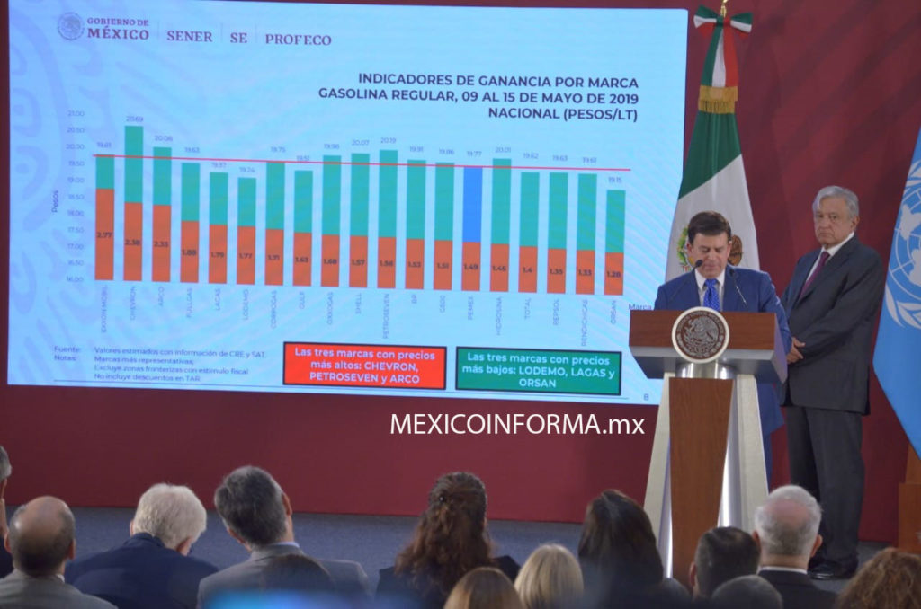 En la conferencia de prensa matutina reveló que por el momento la gasolinera que da más barato el combustible es Repsol en la cuidad de Mexico.