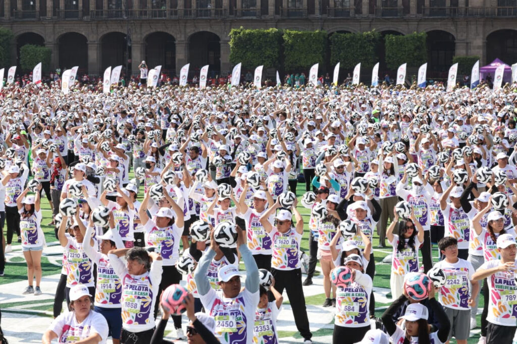 Con la participación histórica de más de 9 mil 500 personas, y en medio de un ambiente festivo y de paz, México batió el Récord Guinness al realizar en la Plaza de la Constitución la clase de fútbol más grande del mundo, como parte de las actividades de promoción para llevar a cabo un Mundial social rumbo a la celebración de la Copa de Futbol FIFA 2026.