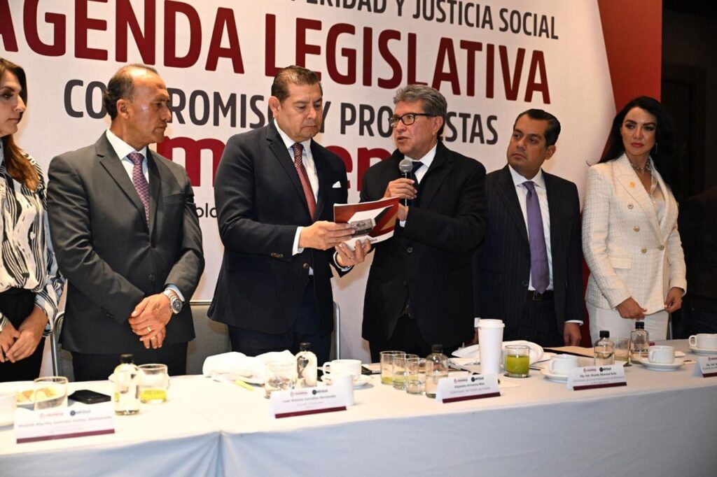 El diputado Ricardo Monreal Ávila, coordinador del Grupo Parlamentario de Morena y presidente de la Junta de Coordinación Política en la Cámara de Diputados, encabezó la presentación del posicionamiento a nombre de las y los integrantes de la bancada, en torno a la toma de protesta de Donald Trump como presidente de Estados Unidos.