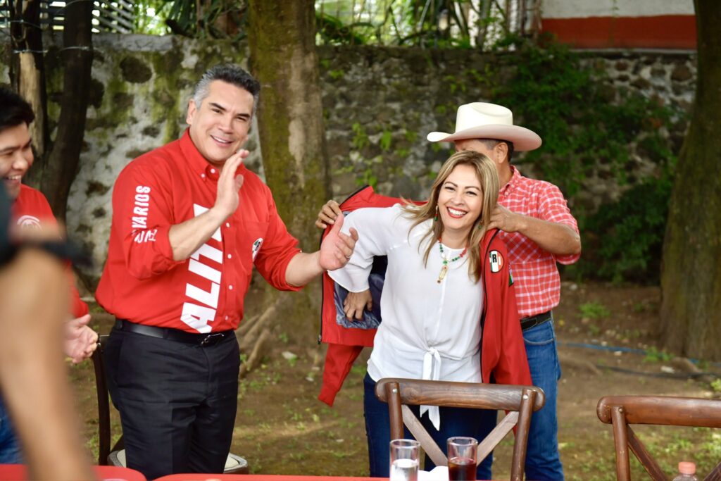 Antes de su registro, el Presidente Alejandro Moreno encabezó un encuentro de los priistas morelenses con Lucy Meza, en el que ella se colocó la chamarra roja del PRI.