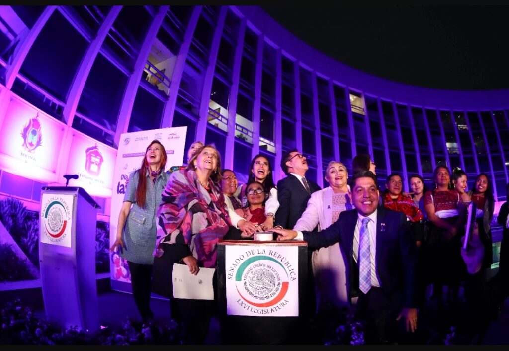 Cabe mencionar que el color morado que ilumina el Senado simboliza la dignidad, la justicia y el compromiso permanente con los derechos de las mujeres.