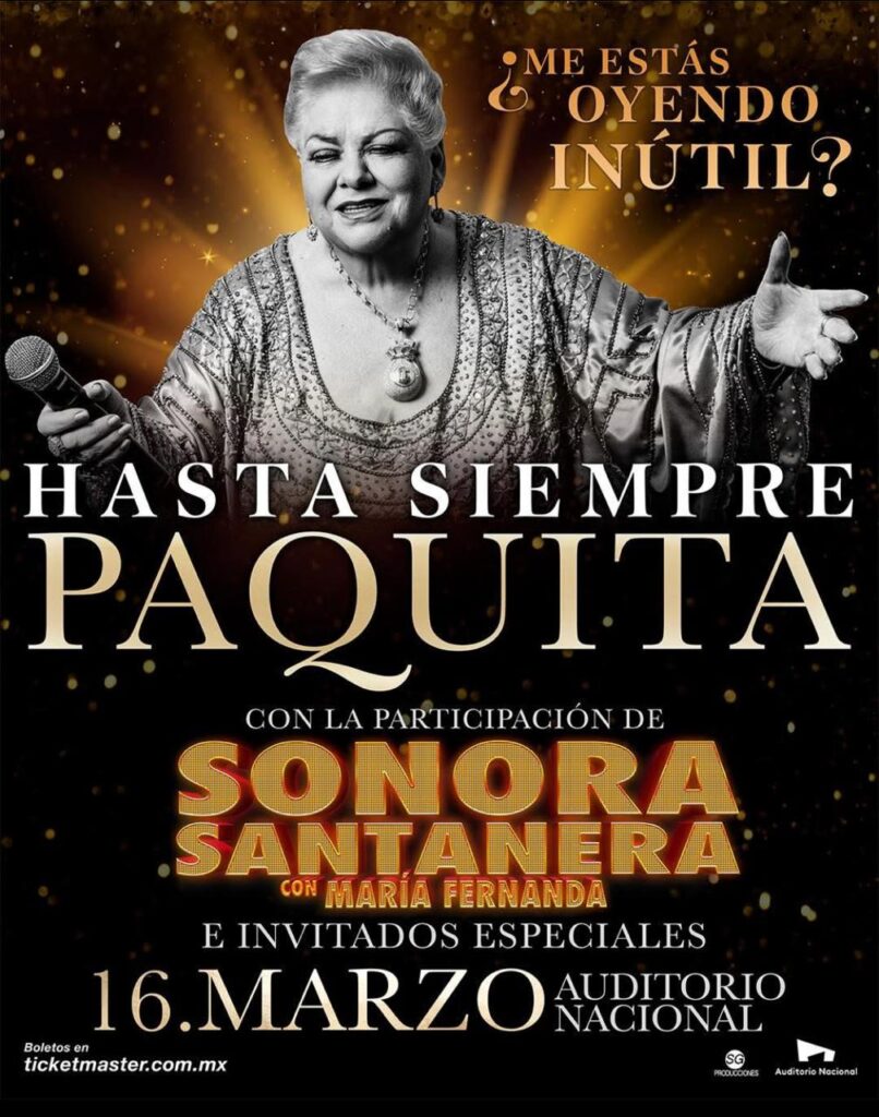 La Sonora Santanera rendirá merecido homenaje a Paquita la del Barrio el próximo 16 de marzo en el Auditorio Nacional, en la fecha que se tenía programada, donde se contará con la participación de destacados artistas invitados que se sumarán a este concierto denominado «Hasta Siempre Paquita, ¿Me Estás Oyendo Inútil?».