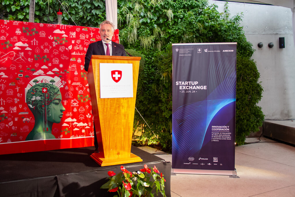 La Embajada de Suiza en México presentó el «Startup Exchange Suiza y México 2024», un evento en el que recibió a prometedoras startups suizas y mexicanas, ocho de cada país, en compañía de grandes empresas e inversionistas interesados en estas destacadas innovaciones en áreas clave como AgriTech, MedTech, CleanTech y Agua, FinTech y Ciberseguridad.