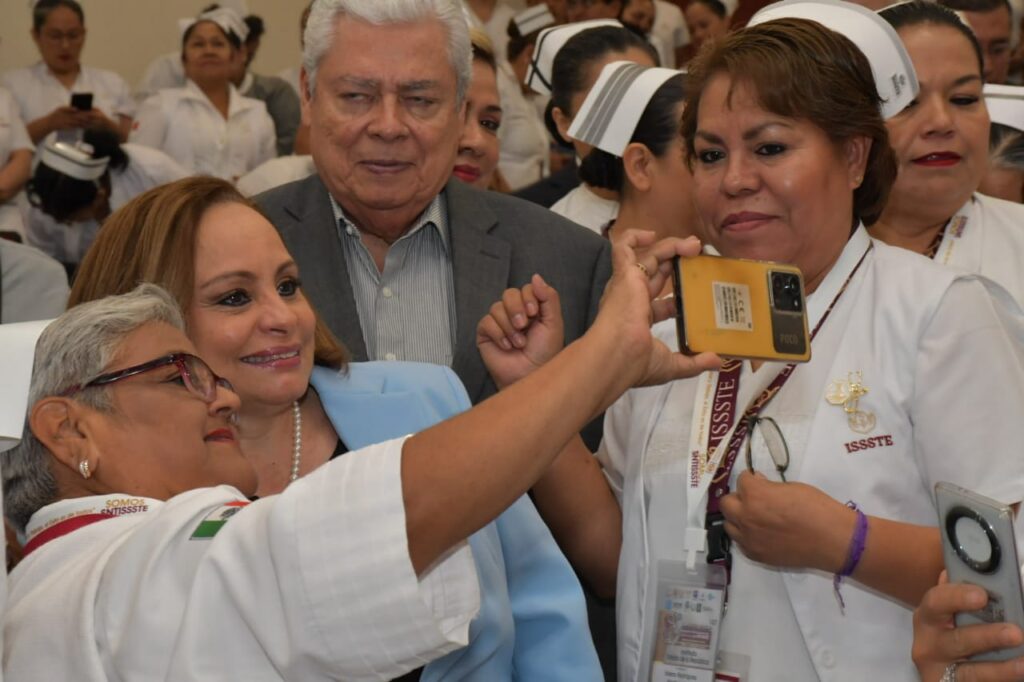 Agradeció a las enfermeras por su dedicación, cariño a su profesión, entusiasmo, entrega, compromiso, cariño y acompañamiento que dan a los pacientes, que es lo único que se llevan en su corazón, “las enfermeras del ISSSTE son el pilar de la salud en México”.