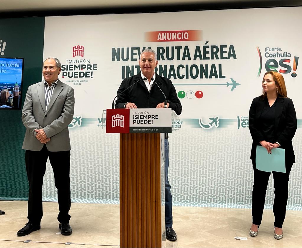 Hoy, en conferencia de prensa, el Ayuntamiento de Torreón, Viva Aerobus y el Grupo Aeroportuario del Centro Norte (OMA) anunciaron un sólido impulso a la conectividad internacional aérea del estado de Coahuila con el anuncio de la nueva ruta Torreón – San Antonio; servicio que, por primera vez, comunica a estas dos ciudades con vuelos directos.