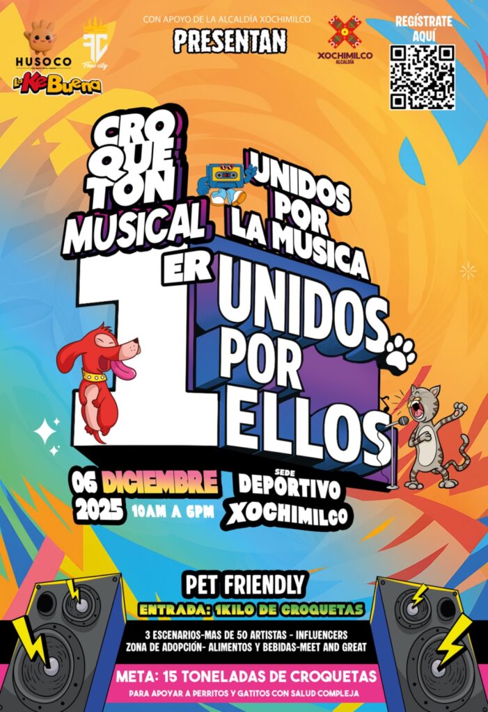 El próximo 6 de diciembre, el Deportivo Xochimilco se convertirá en un territorio donde la música y la empatía caminarán juntas, en un abrazo colectivo destinado a quienes más necesitan ser vistos: los animales en situación de abandono. De 10 de la mañana a 6 de la tarde, el Croquetón Musical reunirá a cientos de personas bajo una causa que, lejos de ser menor, refleja una realidad urgente: México ocupa el primer lugar en América Latina en número de perros callejeros, y cerca del 70% de su población canina —entre 16 y 19 millones de animales— vive en la calle, según cifras del INEGI.